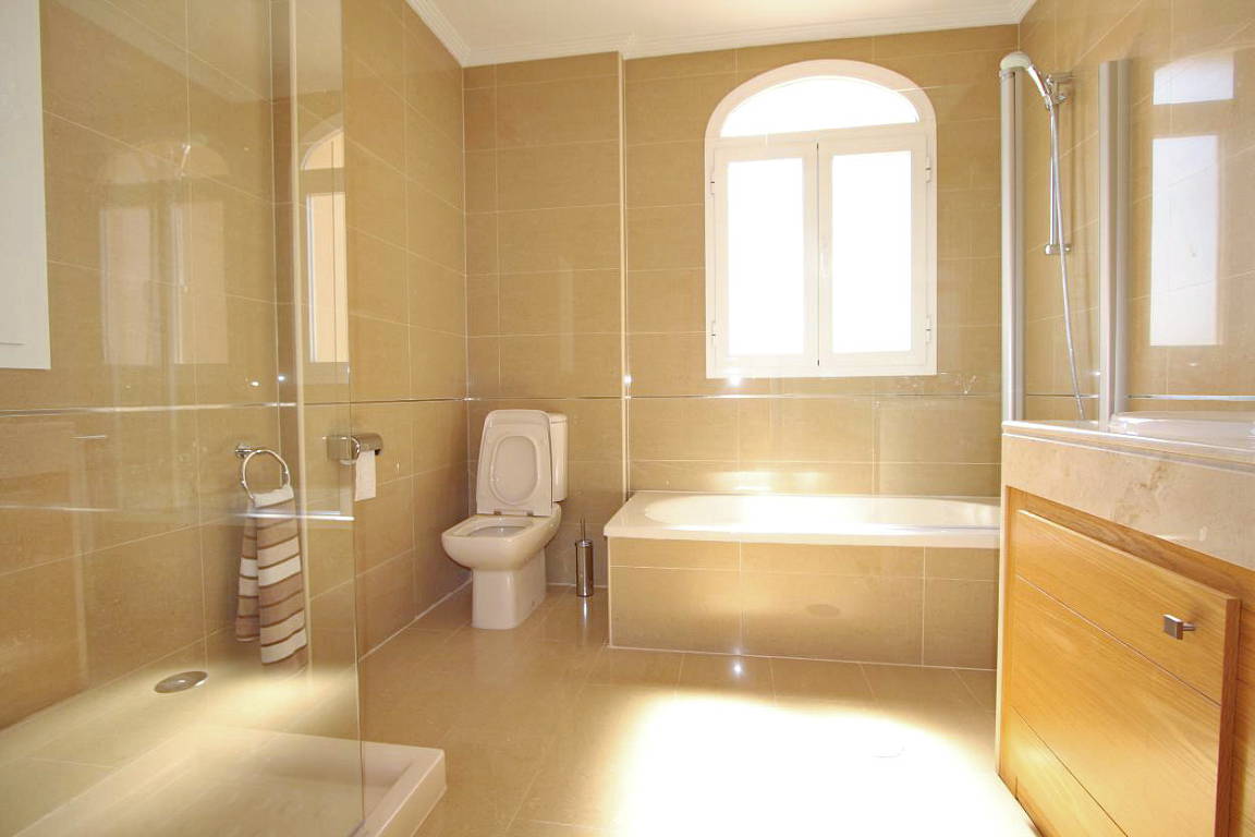Общий сад с бассейном, кремовый мраморный пол, кондиционер тепло/холод, электрические жалюзи.