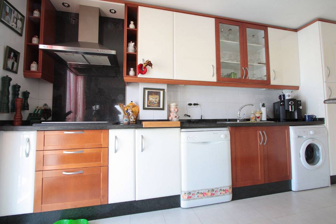 Хорошо оборудованная "L" образная кухня, столовая с гранитной столещницей и встроенной техникой в том числе встроенная духовка , микроволновая печь, плита с вытяжкой, посудомоечная машина , стиральная машина, холодильник / морозильник . Панорамное окно на бассейн и выход на террасу на западную сторону.
