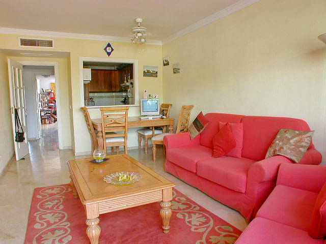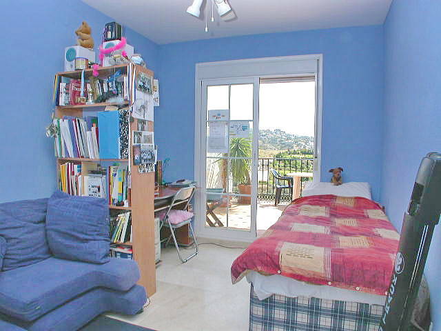 В квартире небольшая прихожая, полностью оборудованная , небольшая кухня, совмещенная гостиная, и столовая, которая выходит на западную террасу с видом на Михас гольф, две спальни, с выходом на восточную террасу с открытым видом, и две ванные комнаты.