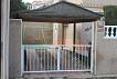 Участок с заездом для 2х машин, на участке растения зона барбекю, беседка.