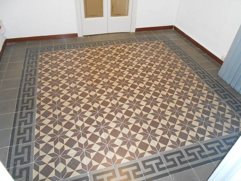 Пол из каталонской плитки, алюминиевые окна и белые двери,