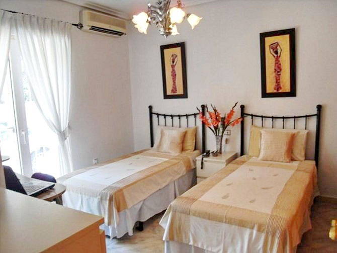 На вилле имеются две двухместные спальни на нижнем уровне и две двухместные спальни на верхнем уровне, в одной из которых расположен гардероб.
