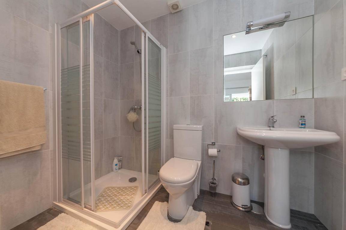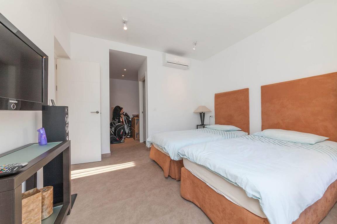Вторая спальня с выходом на террасу у бассейна, встроенными шкафами и ванной комнатой с душевой кабиной и подогревом пола.