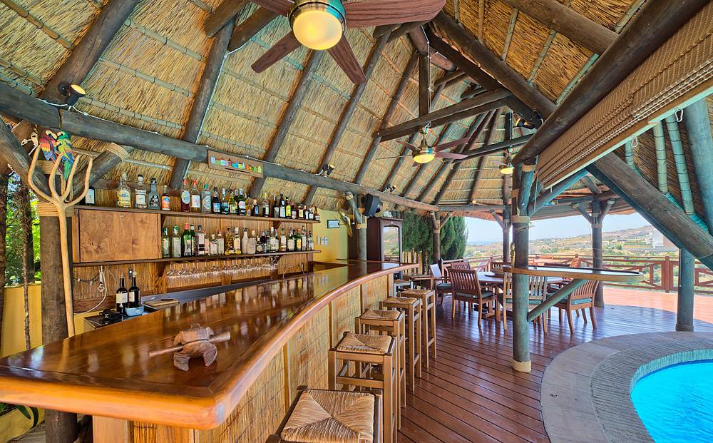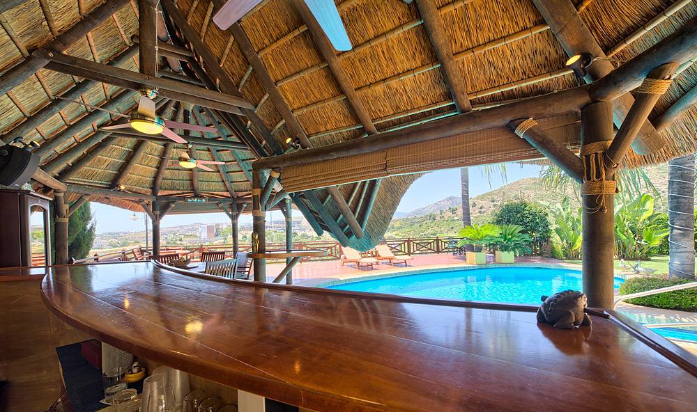 Delightful covered and open terraces and a thatched chiringuito with bar and outside kitchen and BBQ area.