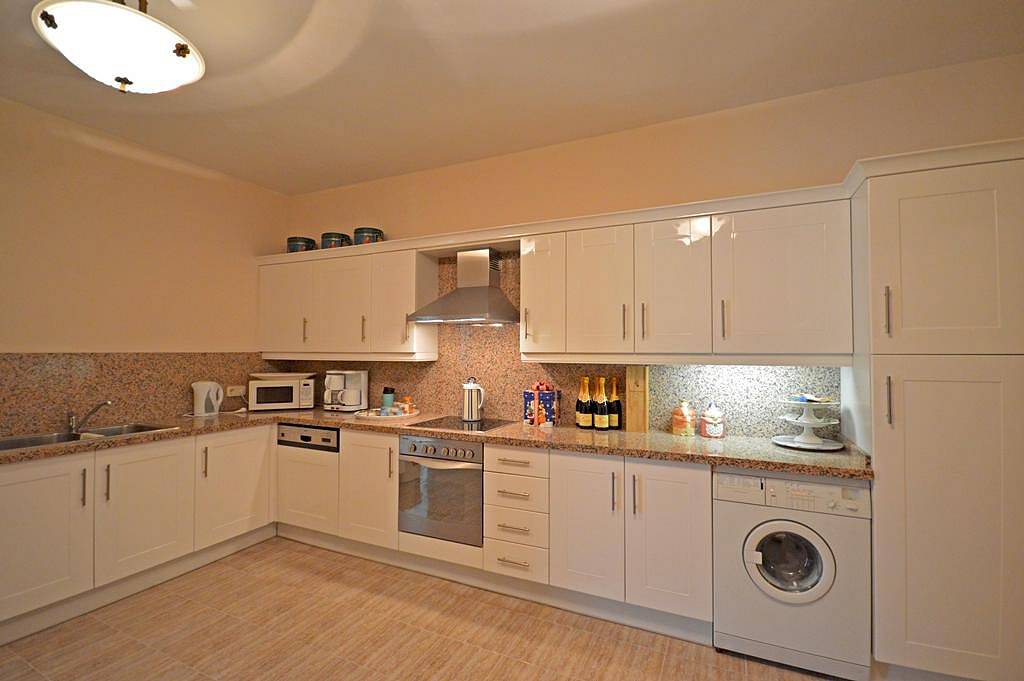 Имущество состоит из просторной прихожей, ведущей в большую трехместную гостиную с камином и выходом на крытую террасу и рядом с прекрасно поддержанными ландшафтными садами; Отдельная столовая и кухня, обе с выходом на террасы, и гардероб на этом уровне.