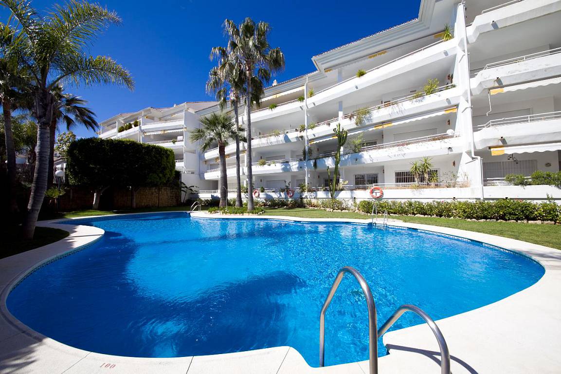 Guadalmina Baja, Marbella - Западная сторона: 3 спальни, 3 ванные комнаты. Апартаменты на 3 этаже с видом на бассейн и сад в закрытом комплексе с круглосуточной охраной.