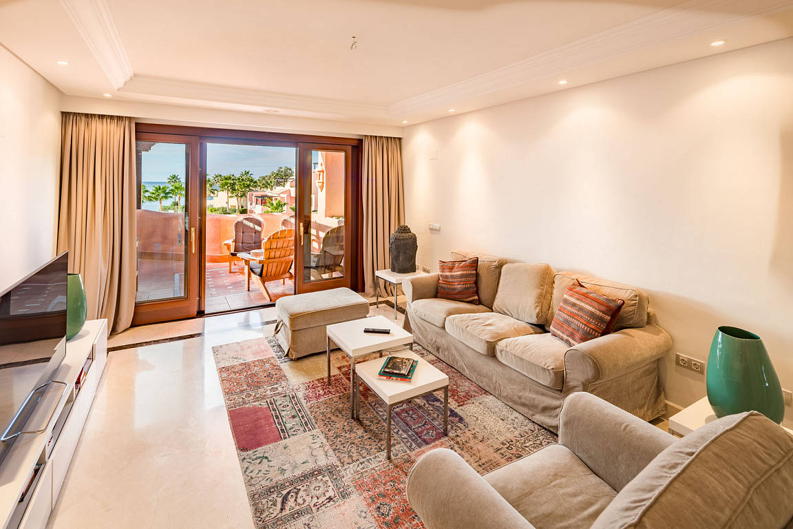 There is hot and cold air conditioning plus double glazing and window blinds together with cream marble flooring.