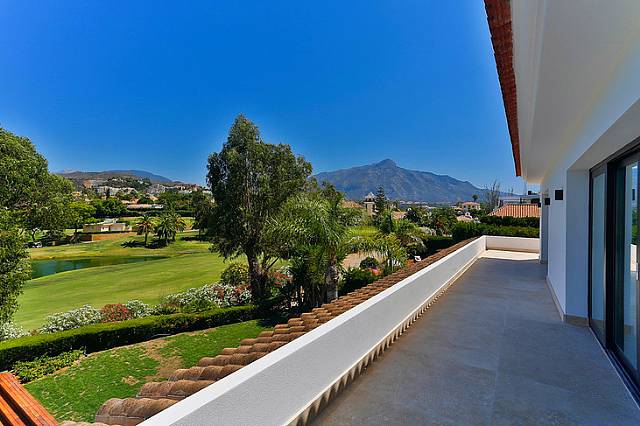 A fabulous opportunity to acquire this brand new, striking front line golf villa with exceptional views over the Los Naranjos fairways and lakes, located in one of the most peaceful streets within a night guarded community in Nueva Andalucia.