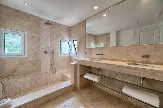 The lower garden level features a spacious bedroom with double doors opening up to the garden, built in wardrobes, bathroom walk-in shower, double vanity - Toilet, private terrace.