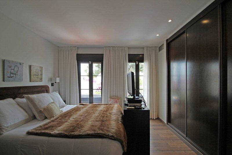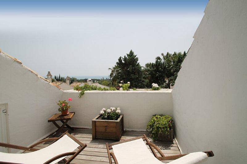 Impeccable tres dormitorios, cuatro banos, orientacion sur-adosada de esquina en una tranquila y consolidada urbanizacion cerrada en Nagueles, entre Marbella y Puerto Banus.