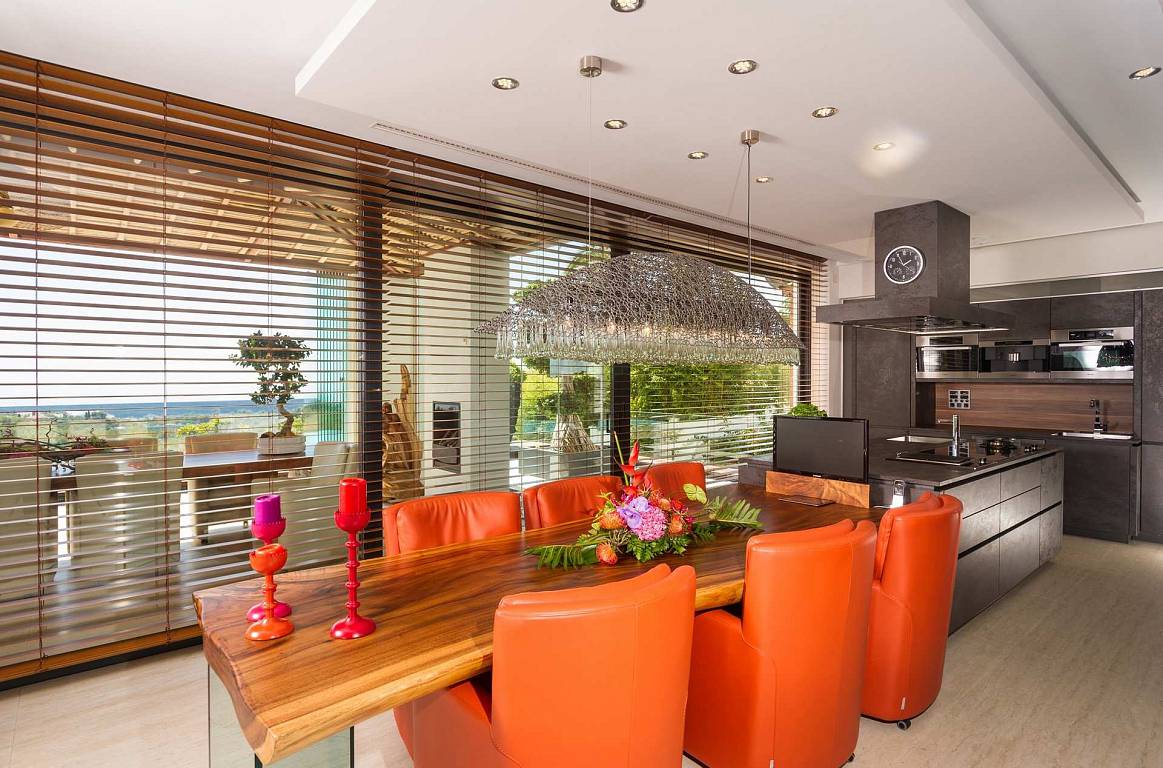Featuring: domotic system for lighting, TV, video, music, a/c, underfloor heating and 2 alarm systems: one laser perimetral around the house and a second in and outdoor 150-zone alarm system with cameras and recording, geothermal installation for pool heating, hot water system.