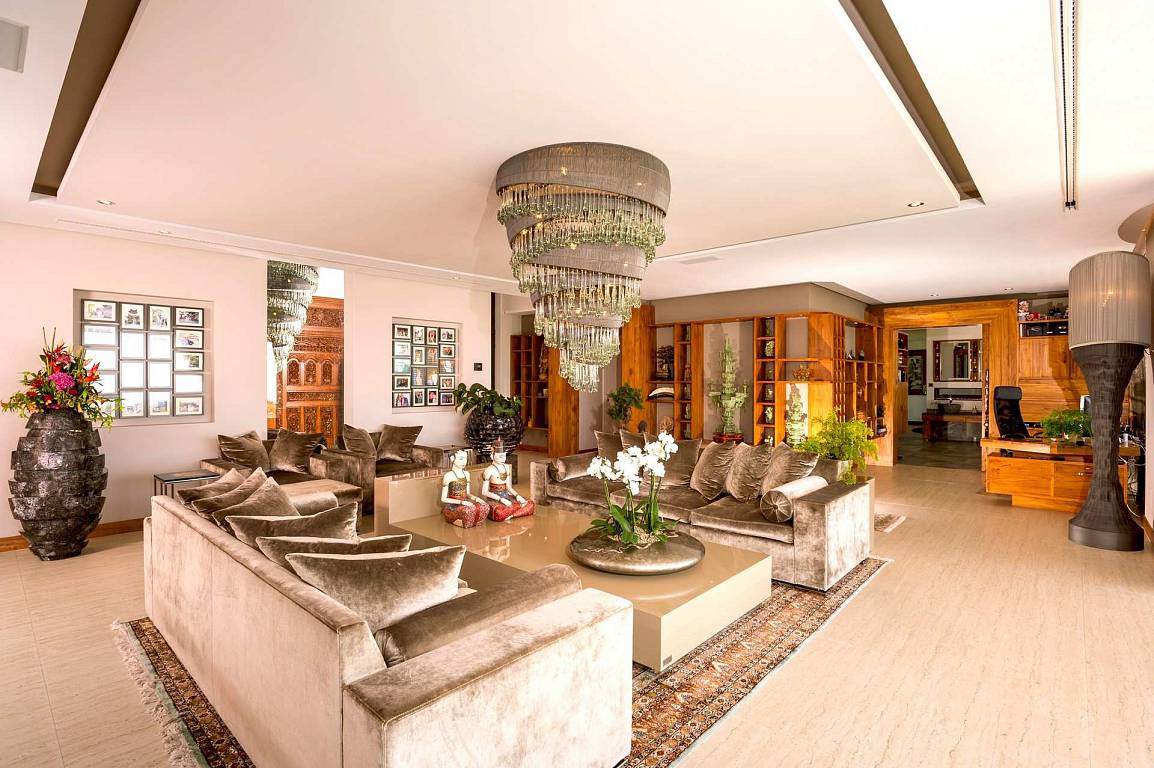 This mansion was designed by the well-known architect Carlos Lamas using top specifications throughout and features: impressive entrance driveway along the Asian terraced garden with parking for 3 cars leading to a magnificent wooden main door made in Indonesia with a koi pond on both sides.