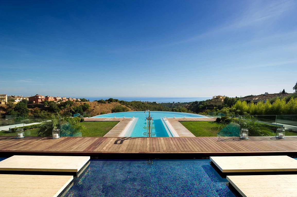 Modern masterpiece with Bali touches and panoramic sea views set on a double plot in Cascada de Camojan, a gated on community on the Golden Mile offering 24 security.