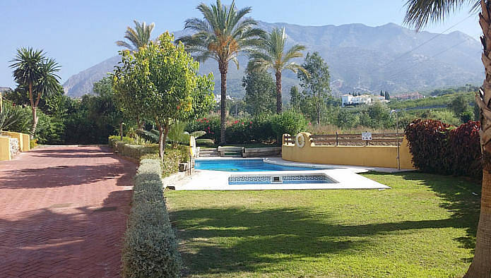 Вилла расположена в жилом комплексе Нуэва Андалусия, недалеко от поля для гольфа Los Naranjos
