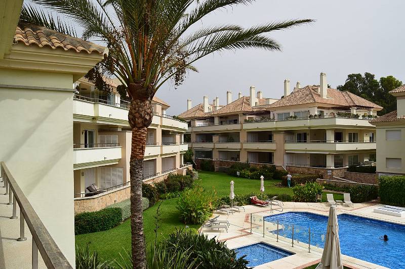 Surrounded by several golf courses, the apartment comprises two bedrooms, two bathrooms with hydro-massage, living-dinning room with fireplace and direct access to a sunny terrace, fully fitted kitchen with laundry room, domotic system, communal garden, swimming pool and parking